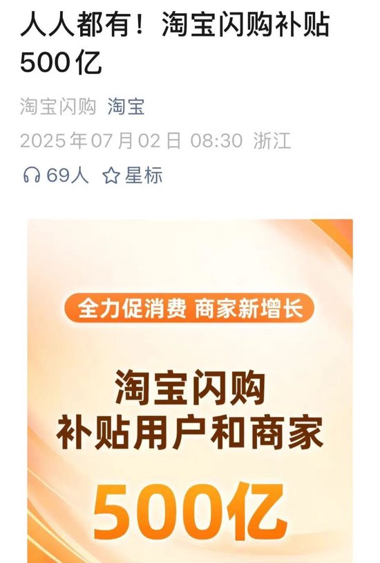 淘宝闪购、饿了么称,接下来,将会在12个月直补消费者及商家500亿元,有效带动消费内需,为商家创造生意增量,并充分做大市场容量,破除“内卷”式竞争。